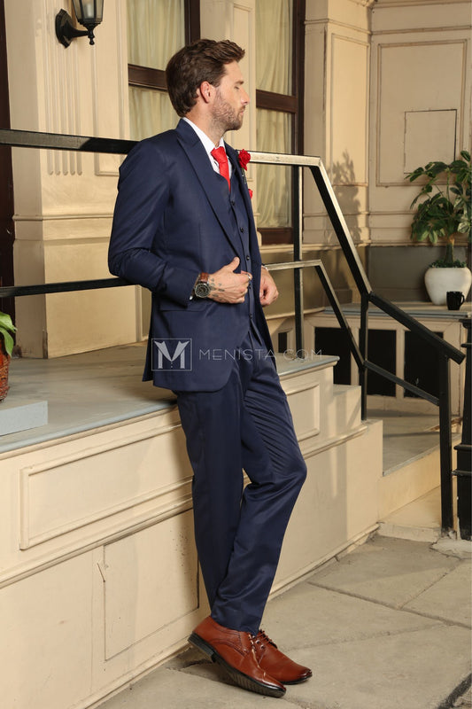 Menista Men's Navy Blue Single-Breasted Suit – Slim Fit Wedding & Formal Wear