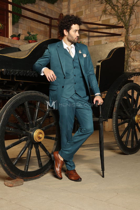 Teal Men’s 3-Piece Suit by Menista - Tailored Fit for Bold Elegance