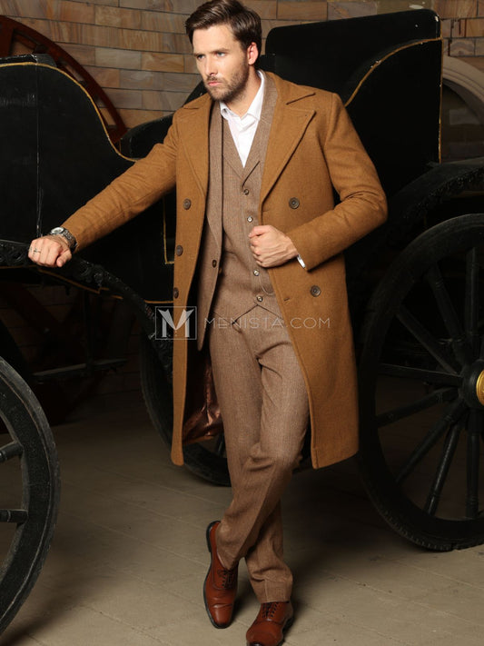 Brown Men’s Long Coat by Menista - Classic Tailored Fit for Refined Style
