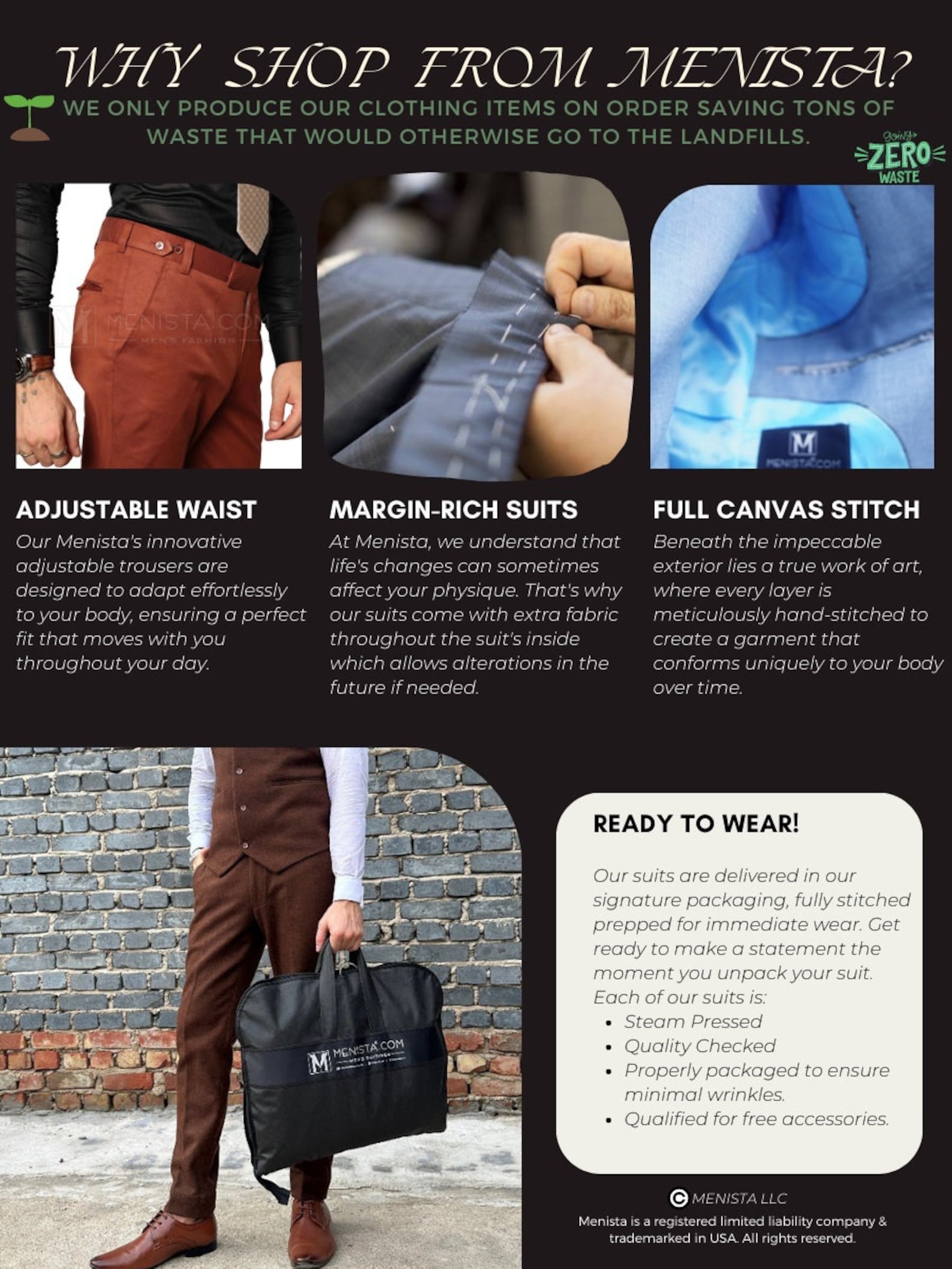 - Ready to Wear: The suit comes fully stitched, ready for you to wear, and is packaged in our branded suit cover to minimize wrinkles.